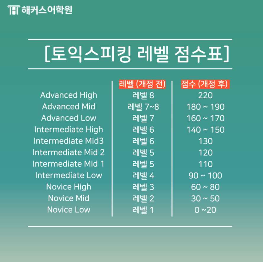 토익 스피킹 점수 / 토익 스피킹 점수 체계 / 토익 스피킹 점수 레벨 / 토스 레벨 확인)